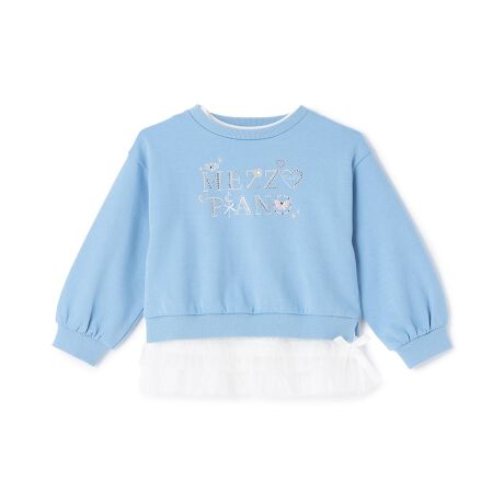 短め丈のトレーナーとペプラムのチュールが可愛いTシャツのセットです。