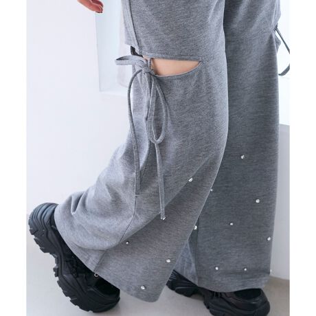 裾回りにビジューが施されたスウェットパンツが再登場。