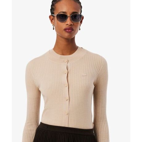 [型番:AF4141-99]シームレス3Dニットで仕立てたメリノウールカーディガン・アニマルフレンドリーなメリノウール100%素材・エレガントな風合いのきめ細かな16ゲージリブニット・手触り滑らかなメリノウールと肌当たりの良いシームレス仕立てによる快適性・胸元に同色のワニロゴパッチを配置Regular Fit