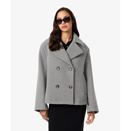 クラシックなPコートをオーバーサイズシルエットで再構築したショートウールブレンドコート