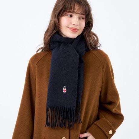 オリジナルキャラクター、バッキンガムベアのワッペンがワンポイントのウールマフラー。