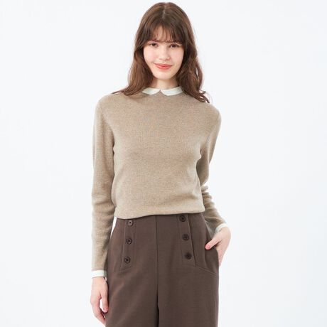 2015年登場以来愛され続けているクレリックカラーニットは、首元の衿に見立てた切り替えが特徴。袖口の配色もポイントです。