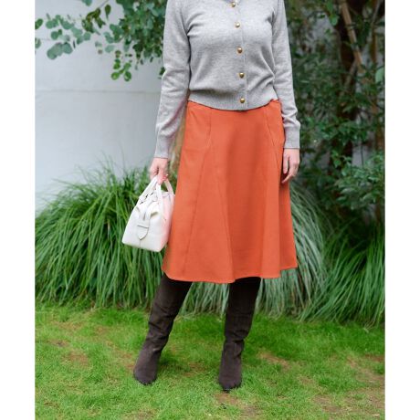 膝丈程度の上品なAラインシルエットでデザインした、クラシカルモダンなフレアスカート。しっかりとした質感の生地には伸縮性があり、肌当たりもよくこれからの季節にぴったり。バックウエストはゴム仕様で心地よくフィットします。両サイドには実用的なポケットをレイアウト。デイリーからオフィス、お呼ばれまで多彩なシーンで活躍してくれそうなアイテムです。バックのホック&ファスナーによりスムーズに着脱が可能。セットアップ対応。