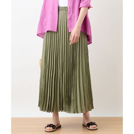 繊細なプリーツがエレガントな雰囲気を漂わせるロングスカート。広がりを程よくセーブした品のあるシルエットで、どんなトップスと合わせても大人ならではのスタイリングに仕上がります。ウエストは総ゴム仕様で心地よいフィット感をもたせました。ナチュラルな風合いの麻素材を使用した、シーズンらしい爽やかさを堪能できるアイテムです。