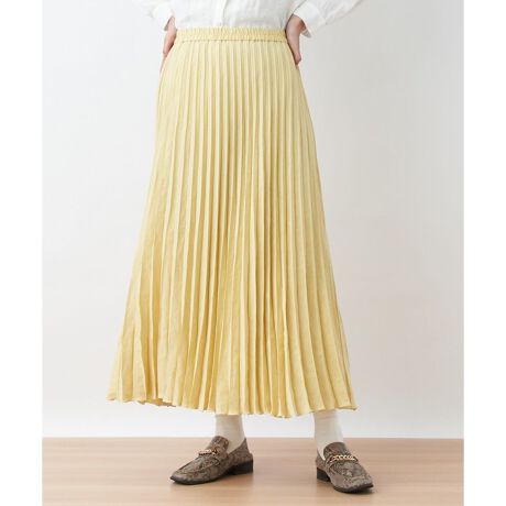 繊細なプリーツがエレガントな雰囲気を漂わせるロングスカート。広がりを程よくセーブした品のあるシルエットで、どんなトップスと合わせても大人ならではのスタイリングに仕上がります。ウエストは総ゴム仕様で心地よいフィット感をもたせました。ナチュラルな風合いの麻素材を使用した、シーズンらしい爽やかさを堪能できるアイテムです。