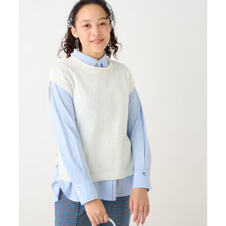 ざっくり編んだスラブ感のあるナチュラルな風合いのニットがシーズンムードを引き立てる、クルーネックベスト。くるっとロールしたネックラインが気取らない表情を演出。裾にはサイドスリットを入れ、スリット上にはボタン留めのタブが施されています。統一感のある上品な色使いでフレキシブルに合わせやすく、コーディネート力抜群のアイテム。シャツやカットソーはもちろん、ワンピースとのレイヤードもおすすめです。