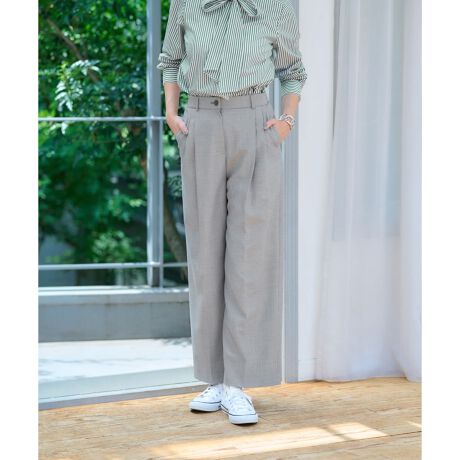 フロントに施されたダブルタックが立体的なシルエットを描き出すワイドパンツ。バックウエスト部分にはゴムを採用しているため、トップスをしっかりとインしても窮屈さを感じさせず、快適な着心地を実現します。上品な風合いの生地が洗練された表情を醸し出し、大人っぽい佇まいを演出。シンプルなカットソーやニットと合わせることで、カジュアルシックなコーディネートが楽しめるのもポイント。デイリーからオフィスまで、さまざまなシーンで活躍する汎用性の高い一本です。