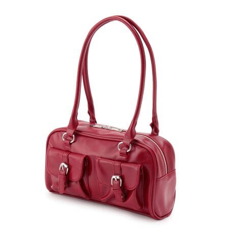 ロングハンドルが魅力的なトレンド感ただようボストンバッグです。横長のデザインとベルトつきのポケットが可愛いポイント。豊富なカラー展開になっており、コーデに合わせて選べます。たくさんのチャームを合わせてオリジナリティーを出すのもオススメです。