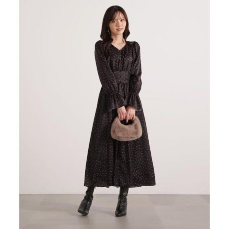 フロント釦とウエストシャーリングが特徴のギャザーワンピース。ウエストを引き締めながらメリハリシルエットを叶えます。手元を華奢に見せるキャンディースリーブもアクセント。上品な光沢感のある生地を使用した柔らかい風合いで女性らしさを演出します。無地ベージュとピンク、オリジナルのニュアンスダイヤ柄の3色展開です。