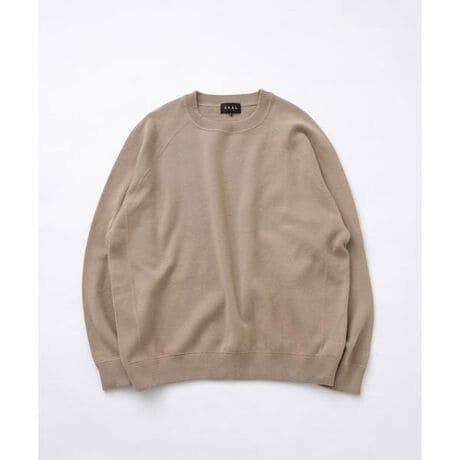 ゆったりとしたラグランスリーブや、各所の飾りステッチでニットでありながらスウェットの様なデザインに仕立てています。