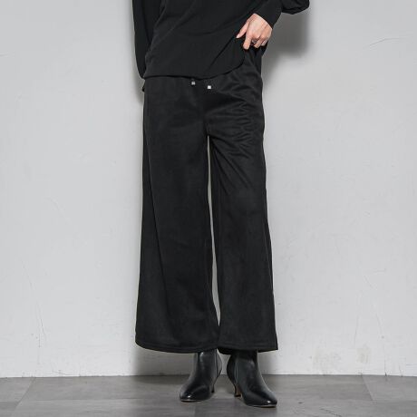 ソフトなスウェードタッチのポンチ素材で仕立てた、リラックス感漂うワイドパンツ。