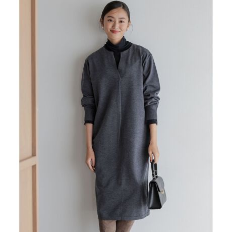 キーネックと丸みのあるコクーンシルエットが大人フェミニンなニットワンピース