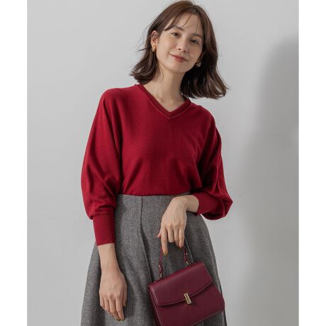 ■デザイン・程よいボリュームのドルマンスリーブに、デコルテを美しく魅せる浅めのVネックの襟元が上品なニットプルオーバー。・前後着用ができ、どちらの面も完成度の高さが自慢です。・女性らしい柔らかさとしなやかさがありながらも体のラインを拾いづらく、裾周りの収まりがよくボトムにインしても綺麗にまとまります。・シンプルで合わせるものを選ばないので、カジュアルからキレイ目まで幅広いコーディネートで大活躍間違いなしのアイテムです。
