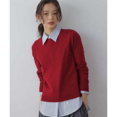 ■デザイン・少しだけ体から離れたルーズフィットなシルエットのプルオーバーニット。・首や肩が美しく見える絶妙なバランス、顔周りがすっきりと見えるコンパクトな首元が女性らしさを際立たせてくれる1枚です。・ヒップにかかる程よい着丈でどんなボトムとも合わせやすいバランスになっています。・シンプルなデザインの中にも、手元のさり気ないレイヤード風ディテールや、脇のスリットなどシンプルながら存在感のあるニットに仕上げています。・絶妙な生地肉なのでダルっとせず好バランスがつくれ、コーディネート次第で様々な表情をみせてくれます。