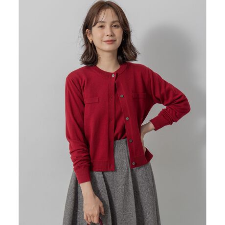 ■デザイン・小さな襟と長すぎない丈がシックでモダンなカーディガン。・首や肩が美しく見える絶妙なバランスと、少し大きめの釦、だましポケットがシンプルなデザインのチャームポイントになっています。・しっかりとした生地なのでダルっとせず好バランスがつくれ、コーディネート次第で様々な表情をみせてくれます。・釦を全部留めてプルオーバーのように着るのもおすすめです。