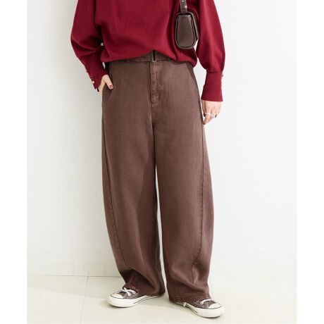 引き続き好調のテンセル混デニム素材を使用した柔らかな風合いのデニムです。DU JOURロングヒットアイテムのBARREL BAGGYよりボリュームと丸みを減らし、より足首に近い位置で膨らみが出るようなカーブシルエットにしています。チノタイプのディテールで汎用性も広く、ビンテージ加工のインディゴデニムと、深みのある特殊製品染めブラウンの2色展開でご用意しております。