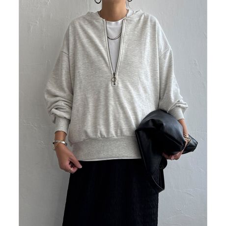 裏毛をフェミニンな印象にしてくれる、深めに入ったジップがデザインポイント。