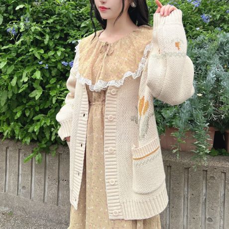 フロントのチューリップデザインがとびきりキャッチーなニットカーディガン