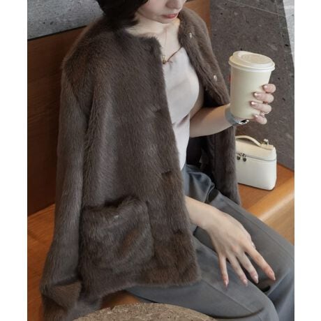 金釦フェイクファーノーカラージャケット
