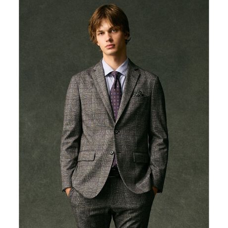 素材の持つ柄感を最大限に活かした、シンプルな2つボタンのテーラードジャケットです。胸ポケットの袋布を引っ張り出すと、そのままポケットチーフとして使える「ギミックチーフ」仕様を搭載しており、装いにさりげない遊び心と華やかさを加えます。また、胴裏にはオリジナルプリント柄と連動したカラークロスを使用しており、見えない部分にもJOSEPH ABBOUDらしいこだわりが光るデザインポイントとなっています。