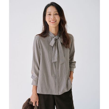 取り外し可能なネックリボンで印象が変わる、トラッドな柄で秋を彩る2wayブラウス