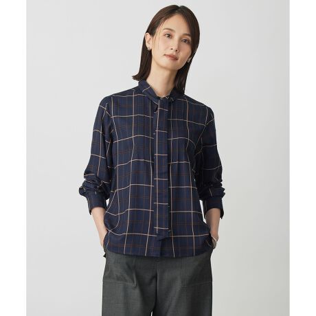 取り外し可能なネックリボンで印象が変わる、トラッドな柄で秋を彩る2wayブラウス