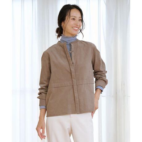 ■デザイン秋口に活躍する、軽やかなコーデュロイ素材のシャツブラウス。今年らしいコンパクトな着丈と、切り替えデザインがポイントで、ロンTやタートルの上にさらっと羽織るだけで、こなれ感のある着こなしが完成します。シンプルながらも洗練されたデザインで、季節感を取り入れた、カジュアルにもきれいめにも着られるアイテムです。カラーは、落ち着いた印象のブルーグレー(#004)、こなれ感を演出するモカ(#030)、肌なじみの良いベージュ(#033)の3色展開です。