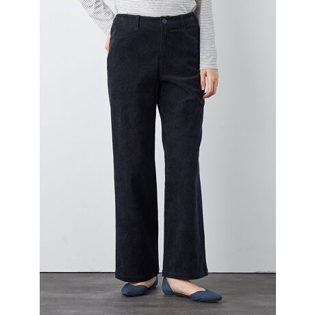 [型番:6250410][型番:6250410]細畝コーデュロイにストレッチ性を持たせたワイドパンツ。微光沢があり上品なカジュアルスタイルが楽しめます。重くなりがちな秋冬コーデをクリーンで新鮮に見せてくれるアイボリーカラーと合わせやすく万能なネイビーの2色の展開です。様々なトップスと相性が良く、いつものボトムスをこれに変えるだけで、一気に秋冬らしい着こなしになります。