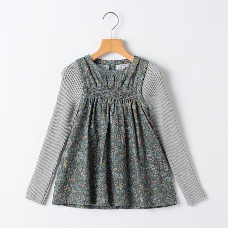 お袖はリブニット素材を使ったレイヤード風デザインで、重ね着しているようなおしゃれな仕上がりに。