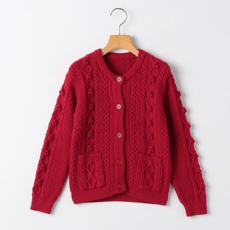 SHIPS KIDS:140〜150cm /〈洗濯機可能〉ケーブル ニット ポンポン カーディガン