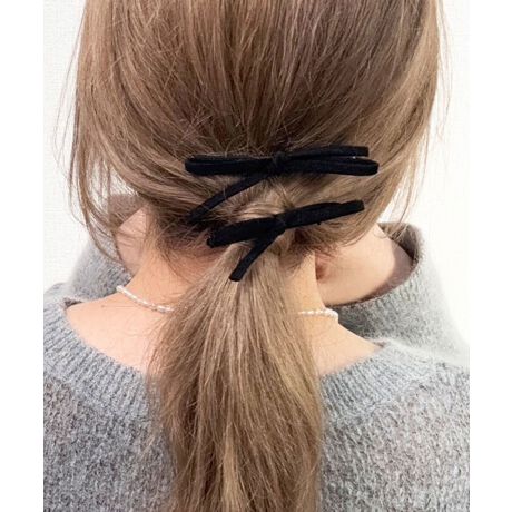 [型番:1153]lus./ラスドット細リボンが可愛くなりすぎず、大人女子でも取り入れやすいデザイン。2点セットだから使い方色々。ゆるふわ巻きにさりげなくONするだけで可愛くアクセントに。前髪や2つ結び、シニヨンのアレンジにピッタリ。クリップタイプで簡単に使えるのも嬉しいポイント。■colorブラック・ダークブラウン・ベージュ・ワイン