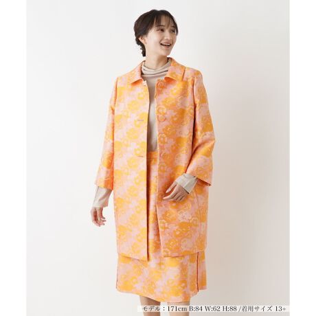 これからの季節に映えるアーティスティックなボタニカル柄が表現された、ミディアム丈のステンカラーコート。スリット入りの袖口は折り返してのアレンジが可能。クルミボタンを採用し、細部までこだわりを感じさせるデザインに。バック中央にはプリーツが施され、美しいシルエットを作り出しています。ヒップまで隠れる程度の丈感なのでナチュラルに体型カバーできるのも嬉しいポイント。