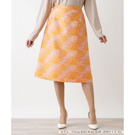 アーティスティックなボタニカル柄が表現されたミディアム丈スカート。緩やかに広がりをもたせたAラインシルエットも相俟って、ほんのり大人フェミニンなムードを演出。サイドに施されたシームラインがさりげないアクセントに。後ろホック&ファスナーにより着脱が可能。タックインすれば脚長見せのスタイルアップ効果も狙えそうです。お揃いの柄のジャケットとのセットアップコーディネートもおすすめです。
