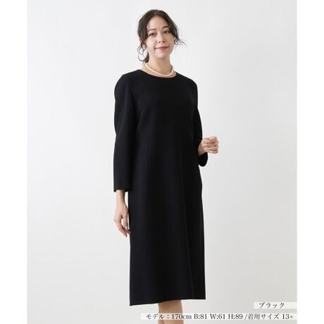 表面感のあるやや厚手の生地で仕立てた、ミディアム丈のサックワンピース。浅めのネックラインが大人の女性らしい上品な佇まいを演出。巧妙なパターンメイクによりすとんと落ちるような美しいシルエットを作り出しています。生地には程よい伸縮性があり、足捌きも良好。身体のラインを拾いにくく、ナチュラルに体型カバーできるのも嬉しいポイントです。バックファスナーにより着脱が可能。