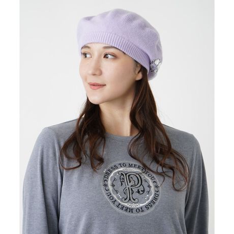 ウールですが、原毛の太さがカシミヤに近いものを選別し使用しています。編み上がりの手触り感がカシミヤに近い柔らかさになるよう仕上げています。レリアンオリジナルでニュアンスのあるウインターパルテルのカラーを展開し、暖かみと大人のかわいらしさを表現。ワンポイントのアクリルビジューでさらに華やかさをプラスしたニットベレーです。