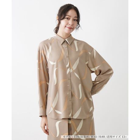 アンティーク調のリボン柄をプリントしたブラウス。さらりとした風合いの薄手のファブリックを使い、程よいリラックス感が感じられるシルエットでデザインしています。端正なフォルムの襟が顔周りをスマートに引き立てます。オフィスカジュアルや週末のお出かけでもさりげなくセンスを発揮してくれる一枚。お揃いの柄のロングスカートとのセットアップ風コーディネートもおすすめです。