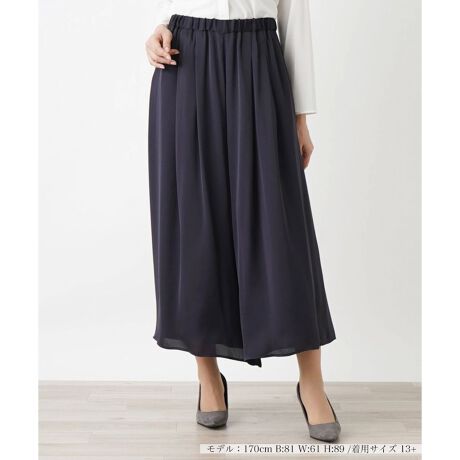 ゆったりとしたAラインシルエットで、スカートのように見えるスカーチョ。タック&ギャザーを施すことで、ナチュラルなドレープ感を生み出し、動きのある柔らかなニュアンスをプラス。シンプルな無地デザインなので、様々なトップスとコーディネートしやすく、着回し力にも優れたアイテムです。ウエストは総ゴム仕様で快適なフィット感があり、長時間の着用でもストレスフリー。カジュアルからエレガントまで、幅広いシーンで活躍する便利な一枚です。