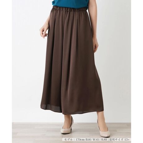 ゆったりとしたAラインシルエットで、スカートのように見えるスカーチョ。タック&ギャザーを施すことで、ナチュラルなドレープ感を生み出し、動きのある柔らかなニュアンスをプラス。シンプルな無地デザインなので、様々なトップスとコーディネートしやすく、着回し力にも優れたアイテムです。ウエストは総ゴム仕様で快適なフィット感があり、長時間の着用でもストレスフリー。カジュアルからエレガントまで、幅広いシーンで活躍する便利な一枚です。