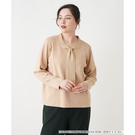 大人の女性らしい清楚な印象を与える、ボウタイニットプルオーバー。ネック中央のボウタイ両脇にあしらったパール調ビジューがアクセントに。シルエットには程よくゆとりをもたせ、リラクシーな着心地を叶えました。定番のベーシックなパンツでまとめるのはもちろん、ミモレスカートを合わせたフェミニンなスタイルとも好相性。オンオフのシーンを選ばず、フレキシブルに活躍してくれそうなトップスです。