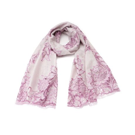 リバーレース機械で編まれた、繊細なレースストール。上品な雰囲気を演出します。