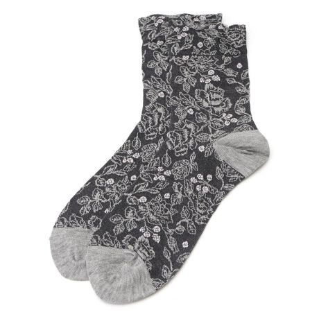 ボタニカル調の柄が上品なソックス。コーディネートのアクセントとして、おすすめです。柔らかな素材を使用し、快適な履き心地も魅力です。