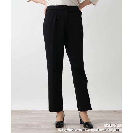 フロントのみセンターシームが施され、レッグラインをすっきりと美しく引き立てるテーパードシルエットのパンツ。縦ラインを強調するデザインが、脚を長く見せる効果を発揮し、スタイリッシュな印象を与えます。生地にはレーヨンとナイロンをブレンドしており、程よいストレッチ性を備えているため、動きやすさと快適なはき心地を両立しています。足捌きがスムーズで、長時間の着用でもストレスを感じさせない仕上がり。カジュアルからきれいめのオフィススタイルまで幅広いスタイリングにマッチします。