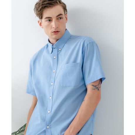 フレンチリネンミックスボタンダウン半袖シャツが登場!