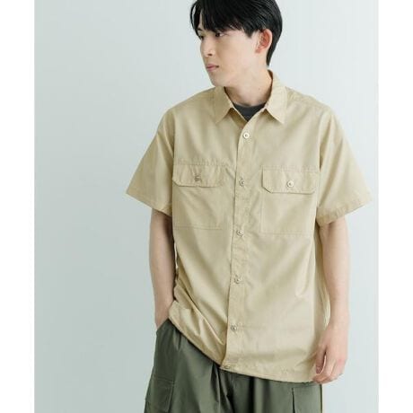 ダウン用のミリタリーライン生地を使用することで軽量で防汚性も担保した、ミリタリー半袖シャツです。(ダウンは入りません)