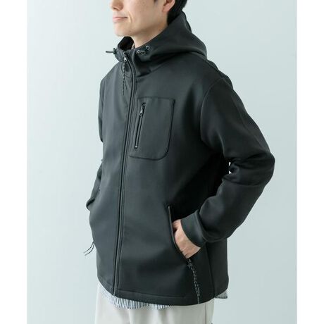 ダンボール素材特有の程よいハリ感と軽やかな着心地が魅力のジップアップフードジャケット。