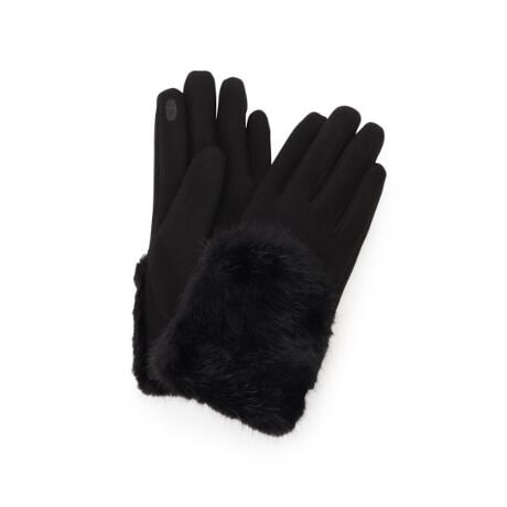 優しく手を包み込んでくれるようななめらかなスエード調素材とリッチなフェイクファーをたっぷりと使用したグローブ。