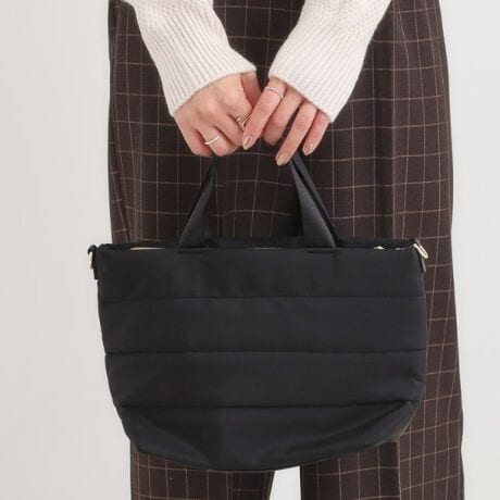 秋冬らしく、本体にボーダーのキルティングを入れたトートバッグです。