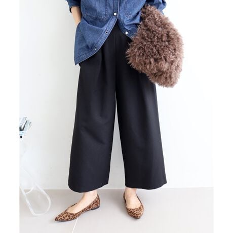 上品なウールライク素材で仕立てたフロントタックのワイドクロップドパンツ。