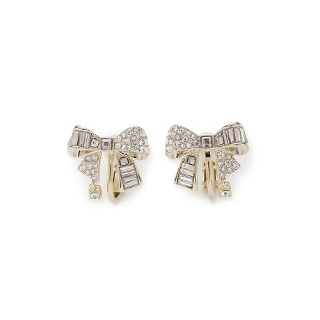 今季はスクエアとサークルのビジューを組み合わせたリボンを、イヤリングに落とし込みました。片側のリボンの足先には小粒のクリスタルを1粒揺らして、可憐な印象に。