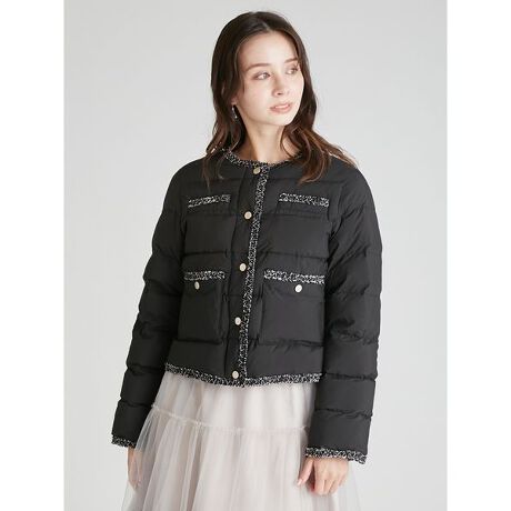 ブレードテープのトリムデザインがツイードジャケットを思わせる、中綿ジャケット。
